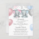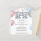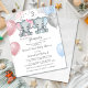 This adorable budget friendly baby shower invitation features twin blue and gray baby boy and pink and gray baby girl elephants with balloons and confetti. Back features soft blue watercolor. Easily customized for your event by clicking "Personalize".