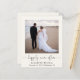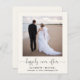 Simple light cream budget-friendly elopement or smaller wedding announcement and post-wedding reception or party invitation. The front features your photograph, "happily ever after" written in a trendy script with swashes and your first names and wedding date and location. On the back, you can personalize your wedding announcement in more detail, add a reception or party invitation and sign your married names in a signature-like script.