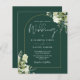 This budget elegant botanical greenery leaves wedding invitation can be personalized with your information in chic typography with your monogram initials on the reverse on an emerald green background. Designed by Thisisnotme©