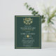 Budget Emerald & Gold Masquerade Sweet 16 Party Invitations. Featuring a faux gold foil mask at the top against an emerald green background. Perfect for a modern yet classy sweet 16 birthday party!