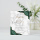 An emerald green watercolor agate design trimmed with faux gold glitter appears in two corners of this elegant design. Personalize it with the couple's names in gold-colored handwriting script over a large gray ampersand. Add the wedding details in black copperplate and italic fonts on a gray and white marble background. The reverse side features a matching green and gold agate design.