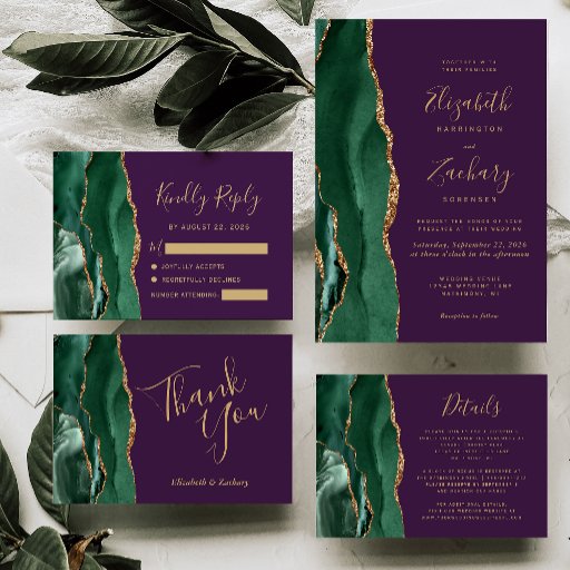 Emerald Green Agate Gold Script Purple WeddingDesigned by Akhates Designs
