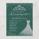 Modern Glam Emerald Green Diamond Tiara Princess Gown Dress Glitter Confetti Sparkle 15th Birthday Quinceanera Invitation