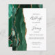The left-hand edge of this elegant modern wedding invitation features an emerald green watercolor agate border trimmed with faux gold glitter. The customizable text combines handwriting, copperplate and italic fonts in charcoal gray on a white background. The reverse side features a matching emerald green and gold agate design. NOTE: Envelopes are not automatically included with these budget invitations, so please remember to choose the "blank white envelopes" option!
