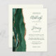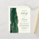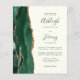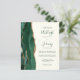 Save the cost of printing and mailing separate RSVP cards with this elegant modern all-in-one budget wedding invitation. The left-hand edge features an emerald green watercolor agate border trimmed with gold faux glitter. The customizable text combines green handwriting, copperplate and italic fonts on an ivory background. The reverse side provides space for wedding details on a solid ivory background, along with a QR code guests can scan to visit your website and RSVP. NOTE: Envelopes are not automatically included with these budget invitations, so please remember to choose the "blank white envelopes" option!