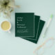 ⭐ NOTE: This is a low-budget flyer paper option. SATIN is the thicker finish here, matt is like paper. Envelopes NOT included. For more traditional paper weights and sizes view the attached collection or transfer the design via the tools on your product page to 'invitation or postcard as required for your event'. ⭐ Elegant monochrome emerald green wedding item. For assistance creating a unique customized item access Zazzle's FREE LIVE DESIGNER or use the TRANSFER tools on the page.⭐Please view the attached collection and 'additional products' to view the full wedding suite featuring this design or color theme. This may include wedding and bridal shower invitations, rehearsal dinner invites, bridesmaid lunch invites along with save the date, rsvp's, favor tags, stickers and much more. Suitable for spring, summer, autumn, fall, winter weddings, indoors or outdoors, mountain, lake, barn, countryside, castle, garden, backyard. Tons of great designs and options for all budgets.