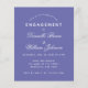 A simple engagement party invitation with a modern color a nuance of violet named color of the year 2022. It has only white text on violet. The names are written in an elegant calligraphic script, the rest in caps. the first line is arched text.