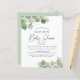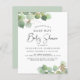 An elegant and budget-friendly baby boy shower invitation with watercolors of eucalyptus greenery with gold accents, and "Baby Shower" written in a stylish contemporary script.