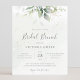 Beautiful bridal brunch invitation featuring watercolor eucalyptus and gold leaves.