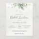 Beautiful bridal luncheon invitation featuring watercolor eucalyptus and gold leaves.