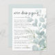Eucalyptus Downsize Livestream Wedding. A budget price SMALLER 4.5” x 5.6” alternative. Available in a SEMI GLOSS 110 lb CARD STOCK which is the default option (thicker for invitations), OR a SATIN FINISH 80 lb THINNER PAPER STOCK (ideal for enclosures). Envelopes are an optional extra and are slightly larger than the card size. If circumstances mean it has been necessary to downsize your wedding, this invites your guests to the livestreaming of your ceremony. This design has modern eucalyptus tinted to the right and modern set script fort he main header. The rest of the text you can easily personalise. A coordinating powder blue is on the back