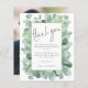 A value for money BUDGET alternative on a smaller size 4.5 x 5.6” semi-gloss 110lbs weight, which is of similar thickness to a postcard (however is not suitable to use as a postcard.). PLEASE NOTE there is ONE invite per sheet. Eucalyptus Frame Photo Wedding Thank You. Lush green botanicals frame the typography, with Thank You in an elegant set script, and your photo on the back as a memento for your guests. Easily personalise the rest of the text and replace the sample photo on the back with your own.