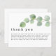 A value for money BUDGET alternative on a smaller size 4.5 x 5.6” semi-gloss 110lbs weight, which is of similar thickness to a postcard (however is not suitable to use as a postcard.). PLEASE NOTE there is ONE per sheet. Budget Eucalyptus Funeral Sympathy Thank You. The header is larger in stylish lowercase with the details beneath. Easily personalise the text to your own message of thanks. Change the text and background colors to any of your choice.