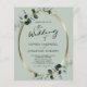 Budget Eucalyptus Gold QR Code RSVP Sage Wedding Invitation... Our affordable QR Code RSVP botanical front and back wedding invitation features a faux gold oval frame embellished with emerald-hued eucalyptus leaves on a light sage background. Chic modern calligraphy displays the text for "the Wedding of", "and" as well as "reception to follow" accompanied by elegant serif typography for the text you can personalize. The sage back of the invitation displays your wedding website QR code as well as the website's URL itself allowing your invitees to easily RSVP online and view all of the details typically sent in a wedding packet. This modern style wedding invitation was designed to be both elegant and budget conscious... not to mention time-saving. The example QR code graphic and all example text (aside from the graphic calligraphy elements) can be easily revised with your own information on the personalization template.
