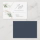 budget watercolor eucalyptus foliage and gold geometric wedding reply card. Elegant modern wedding range. Navy blue backer. Part of a collection.