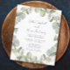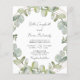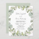 Simple and elegant is this sage green eucalyptus wedding invitation template. Featuring waterccolor eucalyptus leaves arranged in a wreath formation over gold circular rings. Customize the text to create something really unique.