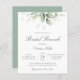 Beautiful affordable bridal brunch invitation featuring watercolor eucalyptus and gold leaves with calligraphy script.