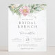 Beautiful bridal brunch invitation featuring blush pink floral watercolor eucalyptus and gold leaves.