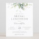 Beautiful bridal luncheon invitation featuring watercolor eucalyptus and gold leaves.