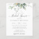 Beautiful bridal shower invitation featuring watercolor eucalyptus and gold leaves.