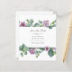 Botanical save the date budget cards you can easily customize by clicking the "Personalize" button. Featuring purple and green bloom and script typography.