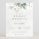 Beautiful bridal brunch invitation featuring watercolor eucalyptus and gold leaves.