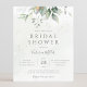 Beautiful bridal shower invitation featuring watercolor eucalyptus and gold leaves.
