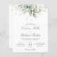 Beautiful wedding invitation featuring watercolor eucalyptus and gold leaves.