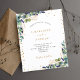 A white background decorated with eucalyptus greenery, golden foliage and hearts. Personalize and add your names and wedding details. Black and golden colored letters.