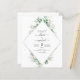 Eucalyptus Greenery Botanical and Green and Gold Geometric Watercolor Spring Wedding Invitations on White background - includes beautiful and elegant script typography with modern botanical leaves and greenery for the special Wedding day celebration.