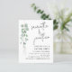 There are two paper options to choose from for this size (4.5 x 5.6”) in the Budget range. For this product, I would recommend the semi-gloss which is a 110 gsm card stock, similar in thickness to a postcard. The Satin option is a much thinner paper 80gsm. The default is set to semi-gloss. PLEASE NOTE there is ONE per sheet. Budget Eucalyptus Informal Wedding Evening Invite A Minimalist botanical style to invite your evening wedding guests. An elegant branch of watercolor eucalyptus leaves runs down the left hand side.