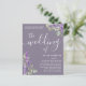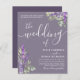 This is a modern and elegant 'the wedding of' calligraphy wedding invitation in white on a dusty purple background with the addition of sage green eucalyptus and purple lavender. Easy to customize the text to create something really unique.