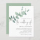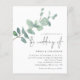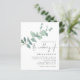A value for money BUDGET alternative on a smaller size 4.5 x 5.6” semi-gloss 110lbs weight, which is of similar thickness to a postcard (however is not suitable to use as a postcard.). PLEASE NOTE there is ONE invite per sheet. Elegant Eucalyptus Leave Script Wedding Invitation. A branch of green watercolor eucalyptus leaves runs diagonally upwards from the left hadn side and worrding is aligned to the right below. The Wedding Of is in a handwritten style set script and the rest of the text you can easily personalise. A coordinating sage green is on the back.