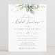 Beautiful bridal luncheon invitation featuring watercolor eucalyptus and gold leaves.