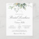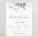 Beautiful affordable bridal luncheon invitation featuring watercolor eucalyptus and gold leaves with calligraphy script.