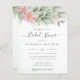 Beautiful bridal shower invitation featuring pink floral watercolor eucalyptus and gold leaves.