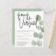 Eucalyptus Leaves Script Virtual Wedding. A budget price SMALLER 4.5” x 5.6” alternative. Available in a SEMI-GLOSS 110 lb CARD STOCK which is the default option (thicker for invitations), OR a SATIN FINISH 80 lb THINNER PAPER STOCK (ideal for enclosures). Envelopes are an optional extra and are slightly larger than the card size. If current circumstances mean that social distancing is essential and for those times when you wish to share your vows with those who live too far away to join you in person, a virtual ceremony via live streaming is the next best thing. This minimal yet stylish design has a single eucalyptus branch running the length of the right hand side, with an informal set script for the header Going Virtual. The rest of the text can be easily personalised to your own details. You can also change the font style and color of the editable text if you wish via the Customize Further option, as well as the background colors on the front and back. You may also consider the guest individual name and address labels available in this collection to make lighter work of your wedding mailings.