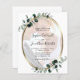 Budget Eucalyptus Photo All in One QR Code RSVP Gold Wedding Invitation... Our affordable "QR Code RSVP" photo botanical wedding invitation features a gold metallic oval frame embellished with sage and emerald green eucalyptus leaves bordering a photo of the bride and groom on a crisp white background. Your photo will be placed on a layer underneath a white transparency to "fade" the colors somewhat so the text on top is readable. The back of the invitation also displays your wedding website QR code as well as the website's URL itself allowing your invitees to easily RSVP online and view all of the details normally sent in a wedding packet. This modern style wedding invitation was designed to be both elegant and budget conscious... not to mention time-saving. All example text can be easily revised with your own information on the personalization template. PLEASE NOTE: Budget cards do not automatically come with envelopes, as do the traditional invitation cards, but you can purchase them on the same page at checkout if you wish. This all in one QR code RSVP design is also available on a traditional 5x7 wedding invitation.