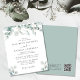Elegant budget-friendly all-in-one wedding invitation featuring watercolors of sage green eucalyptus greenery, stylish script and soft grey typography. On the reverse side, input your wedding website address to create a QR code for your guests to scan to RSVP online and obtain additional wedding details such as directions and accommodations.