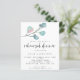Eucalyptus Rehearsal Dinner. A budget price SMALLER 4.5” x 5.6” alternative. Available in a SEMI-GLOSS 110 lb CARD STOCK which is the default option (thicker for invitations), OR a SATIN FINISH 80 lb THINNER PAPER STOCK (ideal for enclosures). Envelopes are an optional extra and are slightly larger than the card size. . A stylish branch of pastel eucalyptus in soft pastels teal and rose pink is at the top. Rehearsal Dinner is set in a modern handwriting style and the other details beneath. Easily personalise the rest of the text to your own. A coordinating teal blue background is on the reverse.