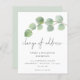 A value for money BUDGET alternative on a smaller size 4.5 x 5.6” semi-gloss 110lbs weight, which is of similar thickness to a postcard (however is not suitable to use as a postcard.). PLEASE NOTE there is ONE invite per sheet. Budget Eucalyptus Script Change of Address. Minimalist style to let everyone know your new address with stylish script set typography for the header and easily personalise the rest of the text with your details. A branch of watercolor eucalyptus leaves is across the top from the right hand side.