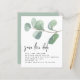Watercolor Eucalyptus Script QR Code Save The Date. A budget price SMALLER 4.5” x 5.6” alternative. Available in a SEMI-GLOSS 110 lb CARD STOCK which is the default option (thicker for invitations), OR a SATIN FINISH 80 lb THINNER PAPER STOCK (ideal for enclosures). Add your QR code to your wedding website on the back by replacing the QR code on the sample. . You can create QR codes for free online. Simply search “QR code creator” and lots of options come up to create for free. A modern watercolor green eucalyptus design and informal set handwriting script for the header. The rest of the text you can easily personalise.