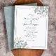 Elegant botanical design in watercolor. Original artwork featuring sage green eucalyptus and coordination foliage. Easy to customize with your own details.