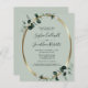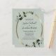 Budget Eucalyptus All in One Website RSVP Gold Metallic Sage Wedding Invitation... Our "All in One" luxe botanical wedding invitation features a gold metallic oval frame embellished with emerald-hued eucalyptus leaves over a light sage green background. The front of the invitation also includes the wedding website where your invitees can RSVP and view all of the details normally sent in a wedding packet. This modern style wedding invitation was designed to be both elegant and budget conscious... not to mention time-saving. All example text can be easily revised with your own information on the personalization template.