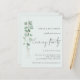 A value for money BUDGET alternative on a smaller size 4.5 x 5.6” semi-gloss 110lbs weight, which is of similar thickness to a postcard (however is not suitable to use as a postcard.). PLEASE NOTE there is ONE invite per sheet. Budget Eucalyptus Wedding Evening Party Mint Green. Minimalist botanical style to invite your evening wedding guests n a background of palest mint green. A set handwritten script for Evening Party and the rest of the text you can easily personalise. An elegant branch of watercolor eucalyptus leaves runs down the left hand side.