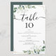 BUDGET Eucalyptus Wedding Menu Table Number Card