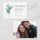 Invite friends and family to save the date for your wedding with this budget card featuring watercolor eucalyptus leaves. The photograph of the models is for illustrative purposes and can be changed to one of your own.