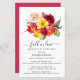 Elegant fall flower bouquet tops this pretty autumn fall in love bridal shower invitation. Burgundy red, blush pink, bright yellow and orange flowers are nestled in green foliage and leaves. The rustic arrangement pops against the white background. The simple text creates a modern design. This invitation is part of the Always Bridal Shower collection that contains the DIY templates you need to create a unique bridal shower invitation suite and bridal shower decor and supplies.