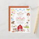 Celebrate your little farmer's big day with this birthday party invitation! This birthday party budget invitation features a frame full of charming farm animal illustrations. There are two little pigs, a family of ducks, cows, bunny rabbits, a horse and a donkey, goats, some sheep, a cat and a dog, a house full of chickens, and a big red barn. Inside the frame, it reads "Oink, quack, moo & neigh" and an invite to the birthday. The birthday boy or birthday girl's name is written in red script lettering with their age below in green capitals. The event details are printed below in simple serif typography. This any-age birthday party invite is perfect for trips to the petting zoo, celebrations at a local farm, and barnyard-themed parties. As part of the budget selection on Zazzle, this sheet isn't a standard invite size or paper quality. If you want this design on an invitation card you can find it in the collection or use the Zazzle Make Machine to transfer it onto the product of your choice. View the collection linked on this page for matching items or visit our store for more birthday party invitations.