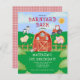 This super cute and budget friendly farm themed 1st birthday invitation is perfect for a Spring or Summer birthday! The venue can be anywhere - at a farm or in your back yard - you can create a farm themed birthday party anywhere! Bales of straw for your guests to sit on, a buffet table with a red and white gingham style table cloth and you can even have inflatable farm yard animals if you can't get a hold of some real farm animals for your back yard. This theme is so versatile and your little guests will love it! The best part is that this invitation can be personalized to include your little one's details. This design features cute farm animals, a cute tractor and a lovely blue sky! There is a lovely gingham style picnic tablecloth style pattern on the back.